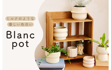 ミルクのようなやさしい色合いと、丸みのあるフォルムが魅力のブランポット! 植物を引き立てながら空間にやわらかなアクセントを添えてくれます。 形違いで並べるとひとつひとつの形の違いが楽しめて、より雰囲気のあるディスプレイに。 是非ご覧ください!