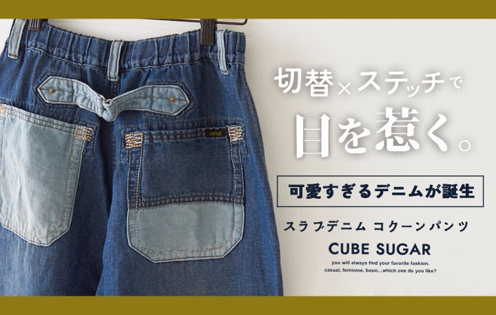 遊び心とこだわりを詰め込んだ、スラブデニムコクーンパンツ ナチュラルな風合いが特徴のスラブデニムに、濃淡を切り替えたリメイク風デザイン。 「ひきそろえステッチ」や「カンヌキステッチ」など、丁寧なステッチワークで、他にはない特別感を演出しました。 丸みのあるコクーンシルエットは、リラックス感がありながらもすっきりとした印象に。 いつものトップスに合わせるだけで、こなれ感のあるスタイルが完成します。