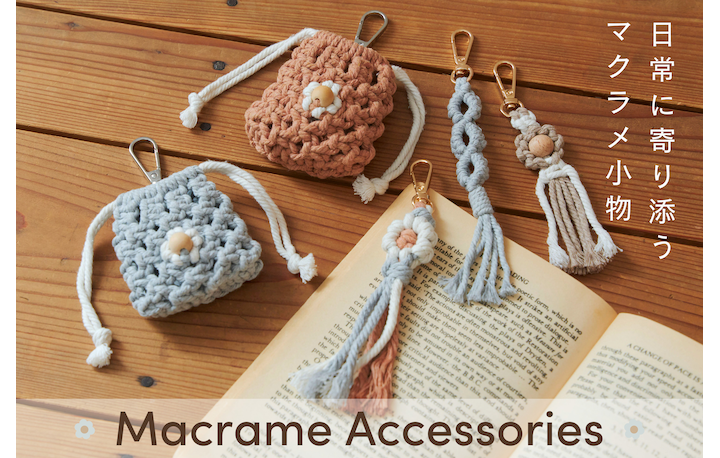 おしゃれで可愛らしいマクラメ編み小物。 手仕事の温かみが、持ち物にさりげない彩りを添えてくれます。 毎日を少し特別にしてくれるアイテムです。
