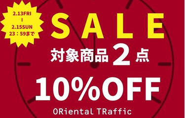 【ORiental TRaffic】本日最終日!週末限定おまとめ買いで10%オフ!