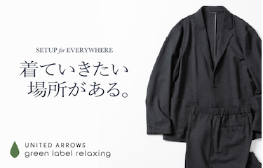フォーマル・ビジネスからカジュアルまで。 幅広いシーンに対応する、グリーンレーベル リラクシングのセットアップ。 リラックス感ときちんと感を両立させ、日常を心地よく彩ります。