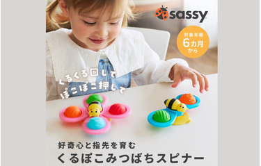 「好奇心にであおう」というコンセプトの 知育玩具ブランドSassy(サッシー)より新商品発売♪ 大人気のみつばちをモチーフにした 『くるぽこみつばちスピナー』 くるくる回して、ぽこぽこ押して♪ 赤ちゃんの好奇心と指先を育むサポート。 吸盤でペタッ!と 、 窓ガラスやテーブルなど、平らな面にくっつけて★ 軽いちからでみつばちの羽がくるくる~! カラフルな羽を押したら「ぽこっ!」の感覚も楽しいよ☺ お部屋はもちろん、お風呂でも遊べます◎ 並べたらさらにキュートな、2個セットのスピナーです ~~~~ ぜひチェックしてみてくださいね!