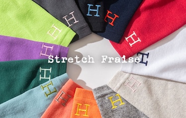 1995年の発売以来ずっと好評いただいていてる、聖林公司のロングセラーアイテム「ストレッチフライス」 肉厚なのにしなやかさがあって、肌あたりもなめらか。 そのやさしい着心地と飽きのこないデザインで、年齢・性別を問わず、幅広い層に愛されています。