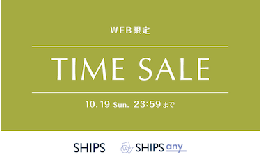 日頃よりSHIPSグループをご利用いただき、誠にありがとうございます。 10月19日(日)23:59まで、WEB限定のタイムセールを開催いたします。 期間限定で対象商品がお求めやすくなります。 この機会をお見逃しなく! ■開催日:2025年10月16日(木)0:00~10月19日(日)23:59 ※掲載商品は一部になります。
