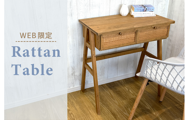 ラタン素材の温かみが感じられる2ドロワーテーブル。 自然な風合いとシンプルなデザインが、お部屋にやさしい印象をプラスします。 是非ご覧ください。