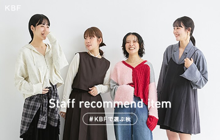 KBF STAFFがご紹介する、秋を彩るおすすめアイテム! ブランドらしい「ひと癖」が効いたアイテムラインナップで、 STAFFならではの着こなしは参考になること間違いなし◯