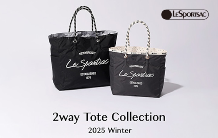 筆記体ロゴがアクセントのリバーシブルで使える2wayトートコレクションに新色が登場。 サンダーカラーにオフホワイトベースのドット柄とブラックカラーにグレーのカモフラージュ柄との2色展開。 カジュアルコーデから通勤スタイルまで、コーディネートもシーンも幅が広がる万能バッグです。
