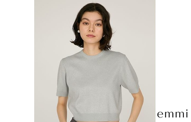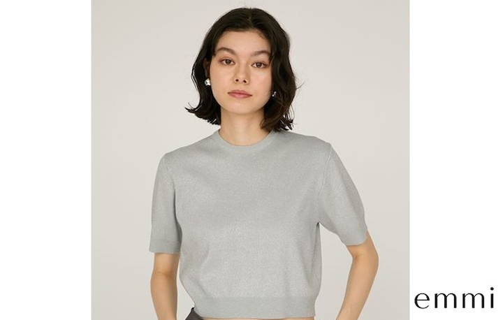 【ONLINE限定カラーアイテム】 半袖トップスと長袖カーディガンがセットに。 ラメを引きそろえて編むことで上品なきらめきのあるアイテムです。
