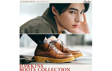 俳優の本田響矢さんが履くHAWKINSのワークブーツ。 柔らかく足に馴染みやすい本革で履くほど自分に合ってくる。 そんな日常に寄り添う1足です。
