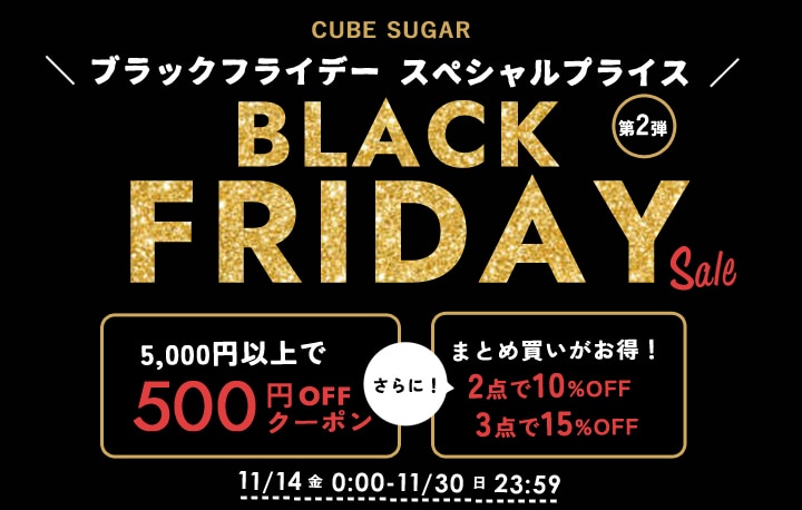 年に一度のブラックフライデーセール開催中! 今回は、お得な「重ねて使える割引」をご用意いたしました。 欲しかったあのアイテムをお得に手に入れる大チャンスです! 5,000円以上のお買い物で500円OFFクーポン配布! さらに!3点以上のご購入で15%OFF!2点以上で10%OFF!でおまとめ買いがおとく♪ クーポンとまとめ買い割引でゲットできる大チャンス! ぜひご覧くださいませ♪