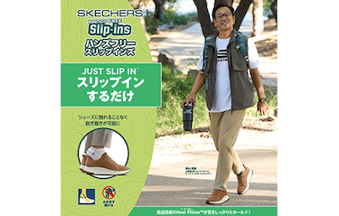 ハンズフリーで履けるSkechers Slip-ins(スケッチャーズ スリップ・インズ)が登場。 かつてないほど履きやすいシューズです。 履くときにかがまず、かかとを引っ張らなくても 脱ぎ履きが簡単なシューズです。