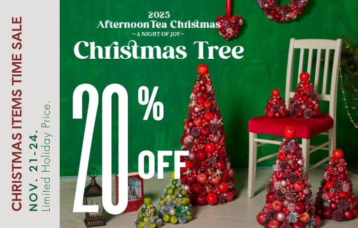 今年のクリスマスアイテムが、期間限定でおトクに登場! ツリーやリース、冬のインテリアを彩るアイテムの一部を TIME SALE 特別価格でご用意しました。 ホリデーシーズンを楽しむ準備を始めましょう!