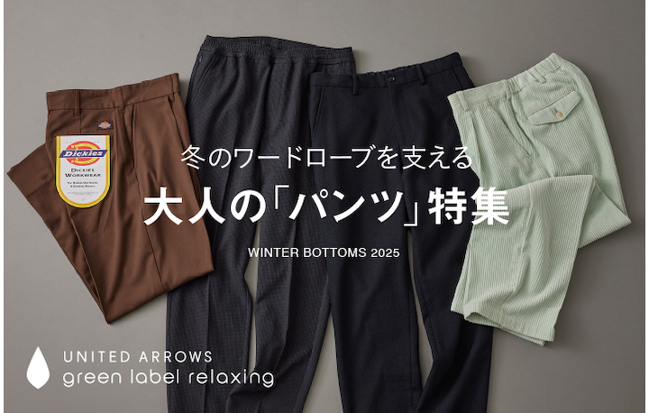 冬の装いでポイントとなってくるパンツ。 暖かみのあるウールやコーデュロイなど、季節感を添える素材で仕立てた一本を、キレイめからカジュアルまで幅広くピックアップしました。