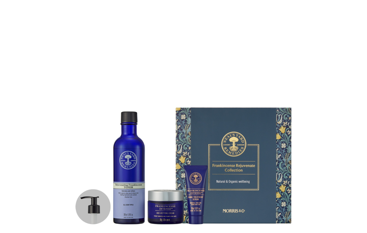 フランキンセンスのスキンケアシリーズをラインで使えるスペシャルコレクション。 「人気NO.1*1化粧水」と日・英ビューティアワード14冠*2を誇る「プレミアム集中保湿クリーム」。 さらに、手肌をふっくらと滑らかに整えるハンド用美容液付き。 乾燥した空気にさらされ、カサつき、ごわつきがちな肌を潤し、輝くハリ肌に導きます。 スキンケアのひとときをフランキンセンスの神聖な香りとともに贅沢に堪能いただける、至福のコレクションです。 ○美しい柄のリユース(二次利用可能な)ボックス入り ウィリアム・モリスが設立したMorris & Co.の代表作、美しいゴールデンリリー柄を特別な色合いでデザインした日本限定ボックスでお届けします。 環境に配慮した素材・仕様のパッケージで、可能な限りプラスチック素材は使用せず、緩衝材はリサイクルできるダンボールを採用しています。 *1 2024年ニールズヤード化粧水カテゴリ売上において *2 日英受賞歴
