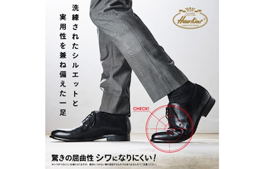 シワになりにくいビジネスシューズ 返りの良いアウトソール 馴染みよいソフトレザー スタイリッシュな顔立ち