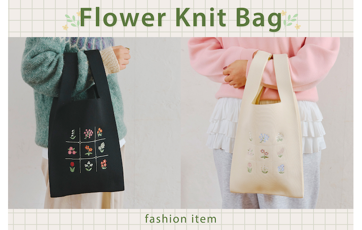 お花の刺繍が目を引くニットバッグ。 あたたかみを感じる素材が、いつもの装いにやさしいアクセントを添えてくれます。 ちょっとしたお出かけにも、気軽に使えるアイテムです。