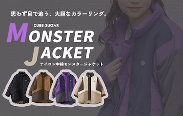 大胆な配色切替が目を惹くモンスタージャケット。 ブラックはシンプルに、その他カラーは配色で存在感のある仕上がり。 軽い着心地ながら中綿入りでしっかり暖かく、真冬でも頼れる一枚です。 ざっくり包み込むオーバーサイズと大きめ前立てで、寒風もシャットアウト。 程よく立ち上がるスタンドネックや胸元のワッペンがアウトドアムードを演出。 長めの着丈でヒップまでカバーし、デイリーからアウトドアまで幅広く活躍します。