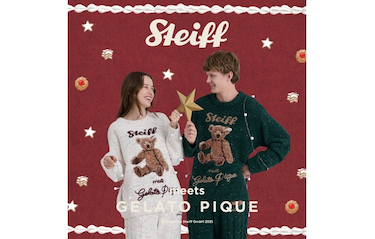 シュタイフとジェラート ピケのコラボレーションシリーズ第3弾。 シュタイフ誕生の地、南ドイツのクリスマスを思わせる「お菓子の家」をテーマに 美味しそうなドイツのクリスマスのお菓子をイメージしたルームウェアや雑貨がラインアップ。 1902年にシュタイフが産み出した世界で最初のテディベア「55PB」のぬいぐるみをモチーフにした、 ここでしか出会えない、こだわりのアイテムを揃えました。 甘く、あたたかな冬のおうち時間を。