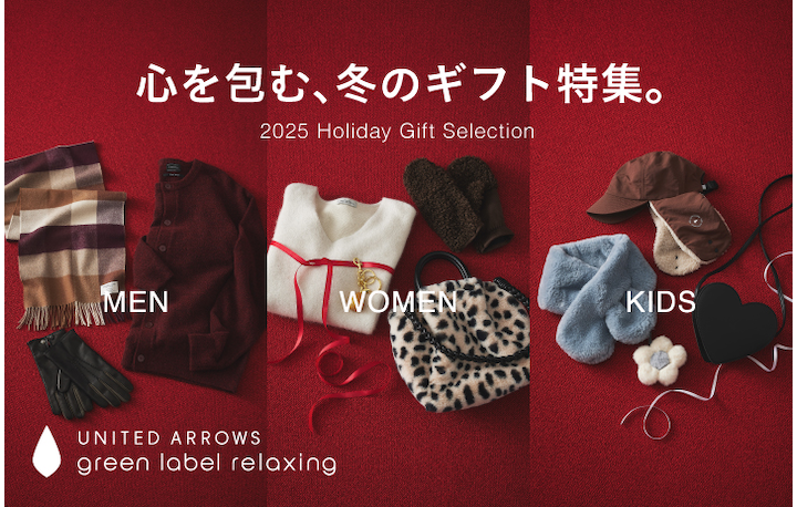 ホリデームードがただよう年末。1年間の感謝を込めて、 大切なあなた・ご自身へ贈るとっておきのギフトアイテムをご用意しました。 ウィメンズ、メンズ、キッズアイテムをまとめてご紹介いたします。 ぜひお気に入りのアイテムを見つけてみてください。