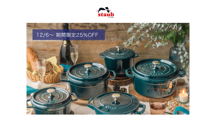 STAUB ラ・メールコレクション、12月6日~12月12日まで25%OFFにて販売! 是非この機会にご利用下さいませ。