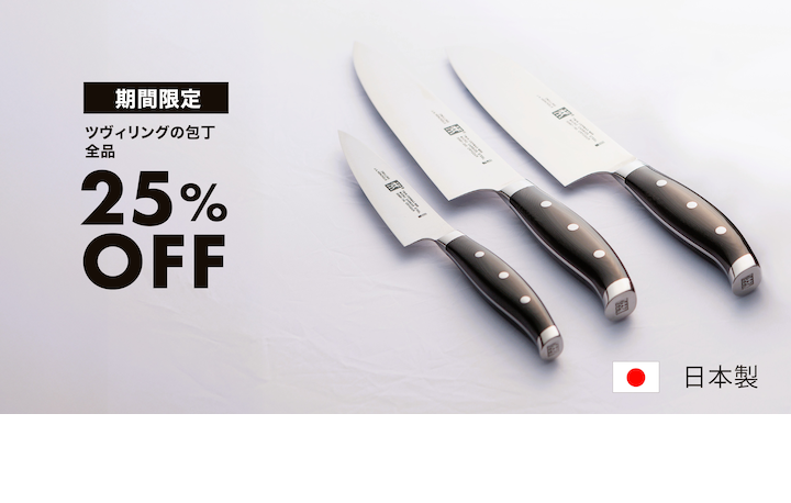 ツヴィリングの対象包丁、研ぎ器、まな板が25%OFF!! 是非この機会にご利用ください。