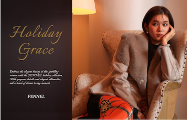 煌めく冬、上品な美しさを纏う FENNELのホリデーコレクション。 華やかなディテールと優雅なシルエットで ひとときをドラマティックに彩ります。 日常も特別な日も、可憐に輝く 新着ホリデースタイルをお届けします。