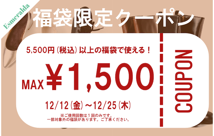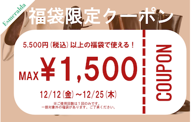 本日12/12(金)~25(木)まで期間限定★ 福袋対象の とっっってもお得な「「MAX¥1,500OFF」」クーポン配布中!!!