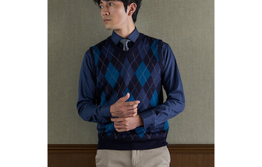 ビジネスはもちろん普段使いもしやすく、知的で洗練された印象を与える「ニットベスト」好評発売中です!