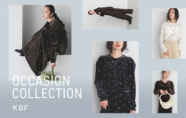 KBFから待望のオケージョンアイテムが登場! ちょっとおめかししたい日常の些細なイベントごとや、結婚式などのお呼ばれシーンにもおすすめです。 シンプル過ぎないデザイン性のあるセットアップや、チュールにジャガードが施された華やかなブラウス、 高見えするベロア素材に刺繍が映えるワンピ―スなど特別なシーンを彩るアイテムをご紹介。