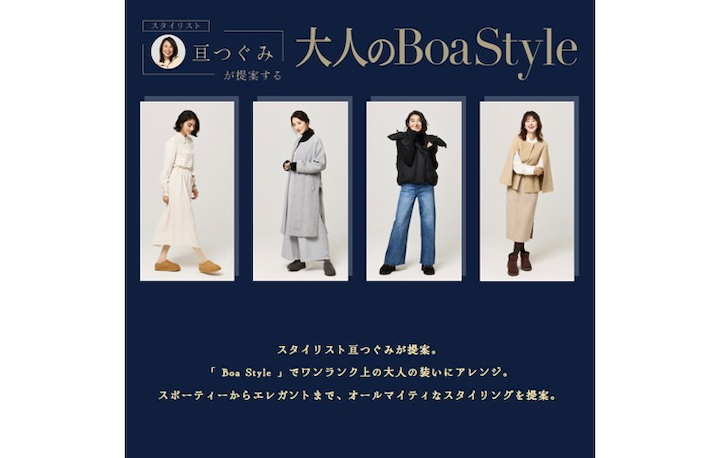 スタイリスト亘つぐみが提案。 「 Boa Style 」でワンランク上の大人の装いにアレンジ。 スポーティーからエレガントまで、オールマイティなスタイリングを提案。