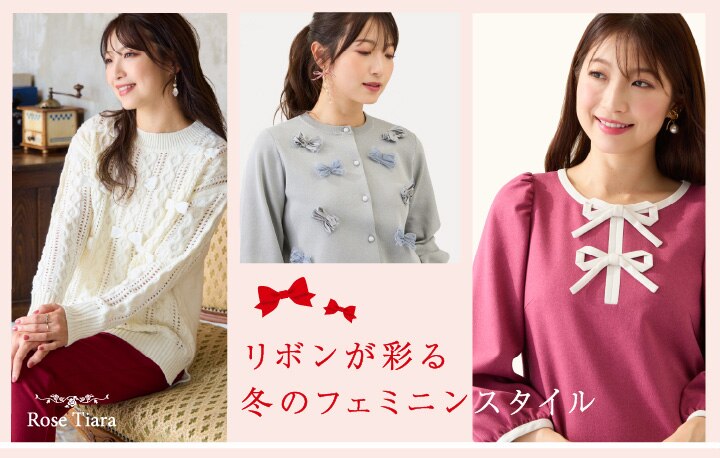 冬の装いに、おとな可愛いを添えるリボン。 ニットやカットソー、ワンピースに施されたさりげないリボンディテールが、上品なアクセントに。 大人のフェミニンスタイルにぴったりな、冬の着こなしをご提案します。