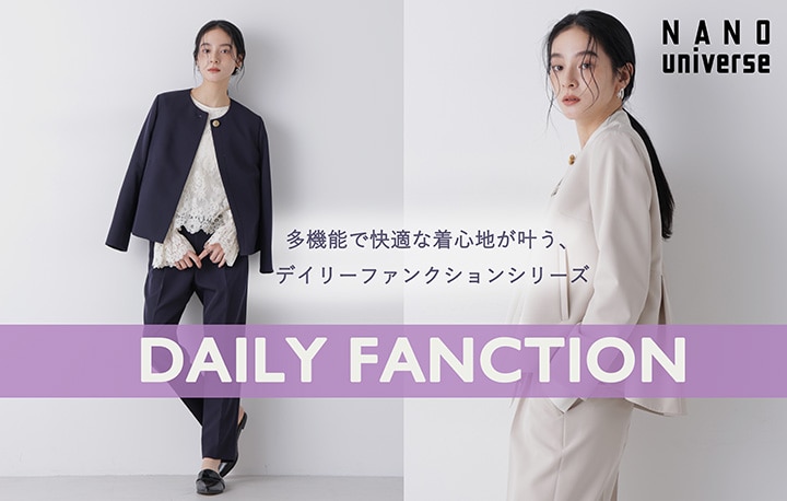 【DAILY FUNCTION(デイリーファンクション)】 デイリーファンクションとは? シーンに合わせて何度でも着回せる日常使いに重宝する嬉しい6つの機能付き! マシンウォッシャブル・シワになりにくい・ナチュラルストレッチ・ピリングしにくい・UVカット・吸水速乾 入卒シーズンなどフォーマルな場にふさわしいきちんと感を演出してくれるセットアップスタイルもおすすめ!