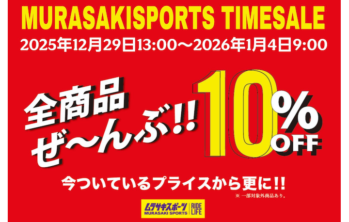 こんなキャンペーン、あっていいのか?! 期間中、全商品が10%OFFとなります! 【期間】2025年12月29日13:00~2026年1月4日9:00まで この機会に是非、ムラサキスポーツでお得なショッピングをお楽しみください!