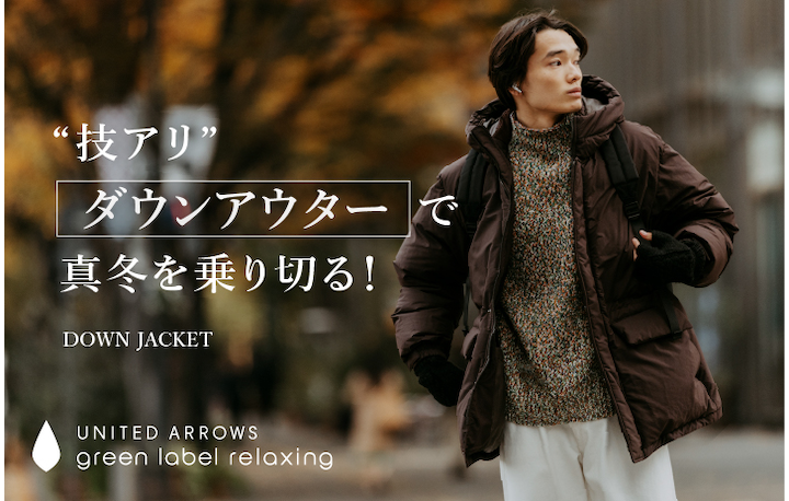 まだまだ寒さが募るこれからの季節、やっぱり手放せないのが、ダウンアイテム。 今季もグリーンレーベル リラクシングでは、別注品や機能素材など、さまざまな仕様を備えた“技アリ”なダウンを多数展開します。 真冬をスタイリッシュに乗り切るべく、お気に入りの一着を選んでみては。