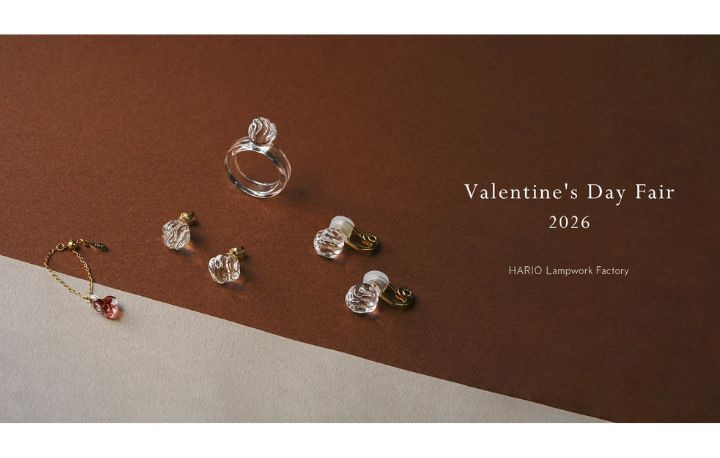 HARIO Lampwork Factory では3月14日(土)までの期間、バレンタインデーフェアとして限定アクセサリーを販売いたします。 (*バレンタインデーフェアは2月14日まで、続けて3月14日までホワイトデーフェア開催いたします) ボンボンショコラのガナッシュをイメージした 新作のデザイン「ウェーブショコラ」に加え、過去に販売しご好評をいただいた「ウィンクハート」のデザインはそのままに、色ガラスを使用したチェーンリングとして復刻いたしました。 数量限定でのご用意となりますので是非この機会にお買い求めいただけましたら幸いです。