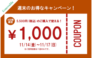 なんと!!本日11/14(金)~17(月)までの4日間限定? とっっってもお得な「「¥1,000OFF」」クーポン配布中!!