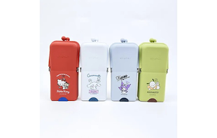 机の上にピタッと立つサンリオのエアピタペンケース。