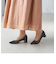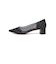 トレンド感のある、シアー素材とメタリックのドットをあしらったパンプス。太めのヒールで安定感も◎