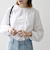 小さなお花のモチーフが散りばめられたノーカラーブラウス。