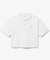 トレンドに寄り添うクロップド丈のデザインに、エレガントなデコルテラインにアレンジ可能な3つボタンのポロカラーとクラシックなワニロゴパッチのワンポイントで洗練度をプラス。きれいめにもボーイズライクにも楽しめる着回し力が魅力です。