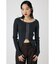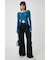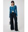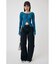 配色が効いたフィットシルエットのリブニットトップ。