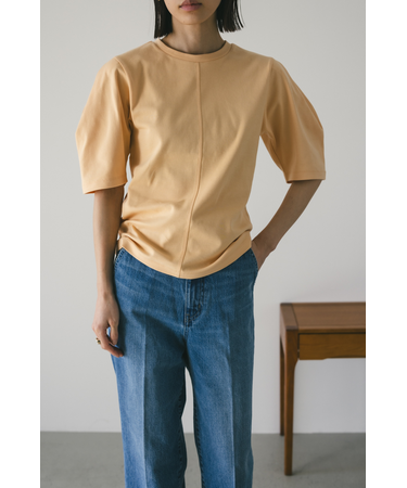 袖に大きく入ったタックスリーブシルエットがポイントのカットトップ。