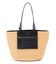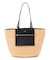 季節感のある雑材を使用したトートバッグです。ハンドル部分は2way仕様になっているので、肩掛けも可能です。フロントにはデザイン性の高いファスナー付きのポケットがついており、機能性も抜群です。バッグの中は仕切られていて、両サイドには大きなオープンのスペース、真ん中にはファスナー付きスペースがついています。中身が見られることも飛び出すこともないので、安心してご使用いただけます。大容量なので、これからの季節レジャーや旅行などにも活躍してくれること間違いなしです。カラーは配色がアクセントになるナチュラル×ブラック(#105)、ナチュラル×ダークブラウン(#135)、濃淡の異なる黒がモードな印象のブラック×ブラック(#005)の3色展開です。