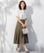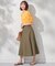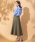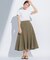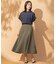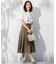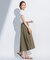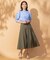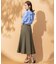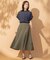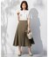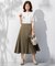 ■デザイン すっきりとした腰まわりと長めの着丈感が女性らしい印象の美しいシルエットのスカートです。タテに切り替えを入れ、裾にかけて広がりのあるシルエットにしています。フレアスカートよりもスッキリ着られるので、いつもの着こなしをアップデート。後ろウエストは部分的にゴム仕様にしているので着心地の良さも嬉しいポイントです。デイリーからお出かけシーンまで幅広く活躍し、1枚でスタイリングを華やかにしてくれます。デニムやボーダー・Tシャツ、スニーカーなどカジュアルなアイテムやストライプシャツやローファーといったトラッドなアイテムとの相性も良く、合わせる小物次第でスタイリングの幅が広がります。同素材のブラウスとセットアップでキレイ目に着ていただくのもおススメです。落ち着いた印象のカーキと万能に使えるネイビーの2色展開です。