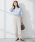 組曲定番のギャザーパンツ。スカート見えのパンツなので安心な着心地とウエストゴムのイージーな履き心地が嬉しいアイテムです。ウェスト内側は、ドロスト仕様になっているので共ヒモで、好みのウェストのサイズに調整できます。分量感のあるシルエットで、揺れ動くたびに女性らしさを演出。ギャザーがプリーツのようにタテに落ちてみえて上品な印象です。ポケット付きのデザインで使い勝手も◎。程よいカジュアル感はありながらも、さらっとしたキレイ目な素材感は、ゆったりとしたニットやカジュアルなアイテムと合わせてクラスアップに。落ち感のあるシルエットは、タックアウトのスタイリングでも重たく見えず、大人のリラクシースタイルがつくれます。