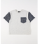 シンプルなTシャツですが、前身頃のポケットと袖にヒッコリー柄を使用し