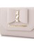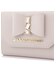 きらめく装飾でリボンをデコレーションしたレディライクなミニ財布。スナップボタン開閉でコインケース、紙幣とカード類を入れられる便利なデザインです。小さいバッグの中に入れやすい三つ折りのコンパクトなサイズなので、すっきり持ちたい方にもお勧めです。※撮影時照明の関係により、色味が違って見える場合がございます。