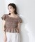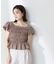 身頃のシャーリングとサイドのレースアップとの組み合わせがスペシャルなブラウスです。フィット感がありながらもシャーリングなので着心地が良い1枚。コンパクトなシルエットのため、ボトムと合わせやすいデザインです。