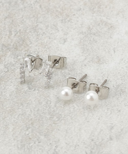 ・華やかなビジューと上品なフェイクパールを組み合わせたセットピアス。