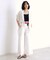 このワイドパンツは、シンプルなブラウスやニットとの組み合わせがおすすめです。